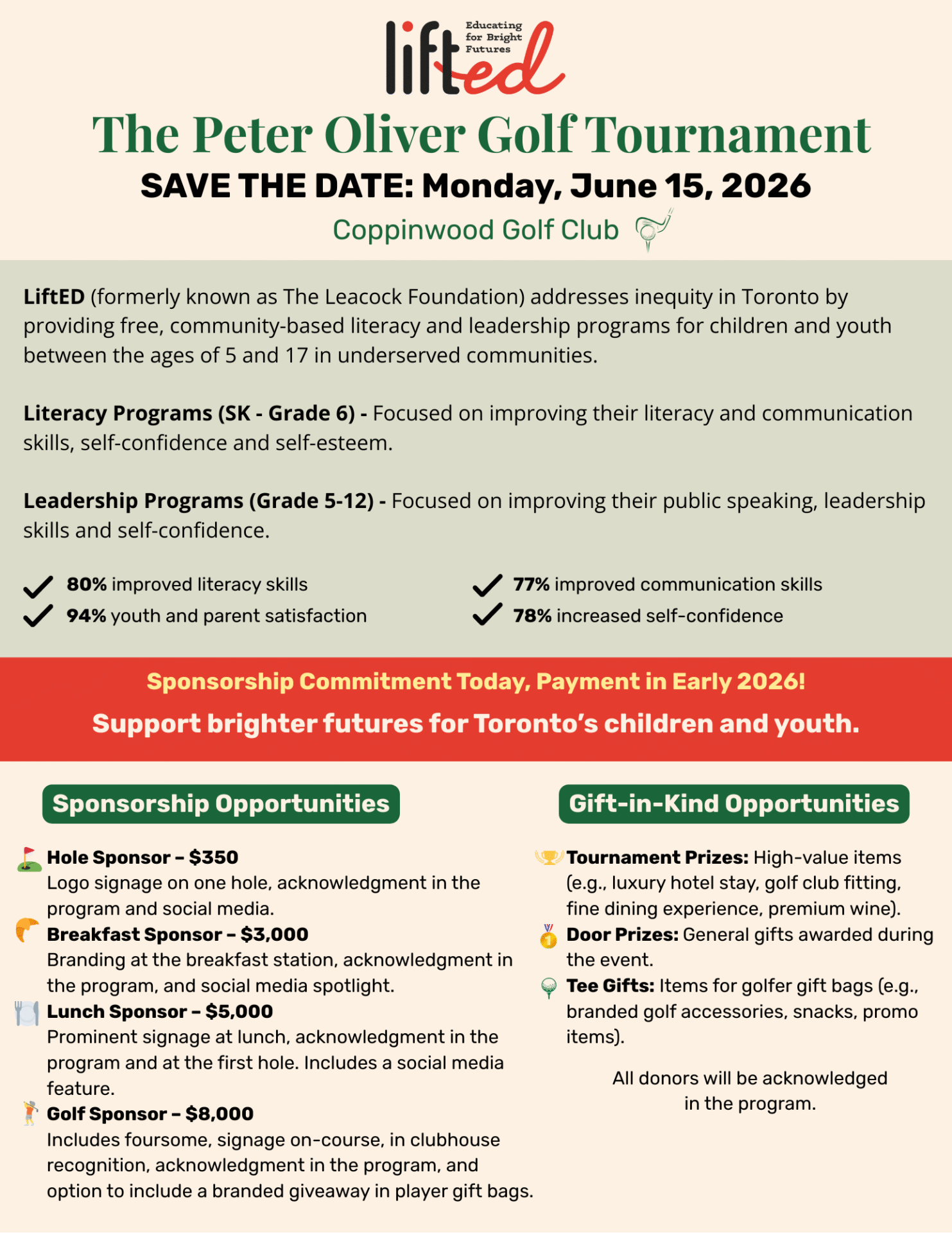 Don’t miss out on this incredible event! It’s more than just another day on the course – it’s a chance to have fun, learn something new, and make a real difference in the lives of those who need it most. Every child deserves the chance to succeed. Your support can make that possible.